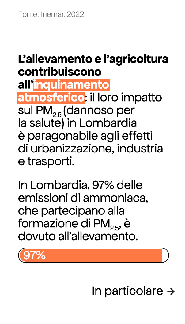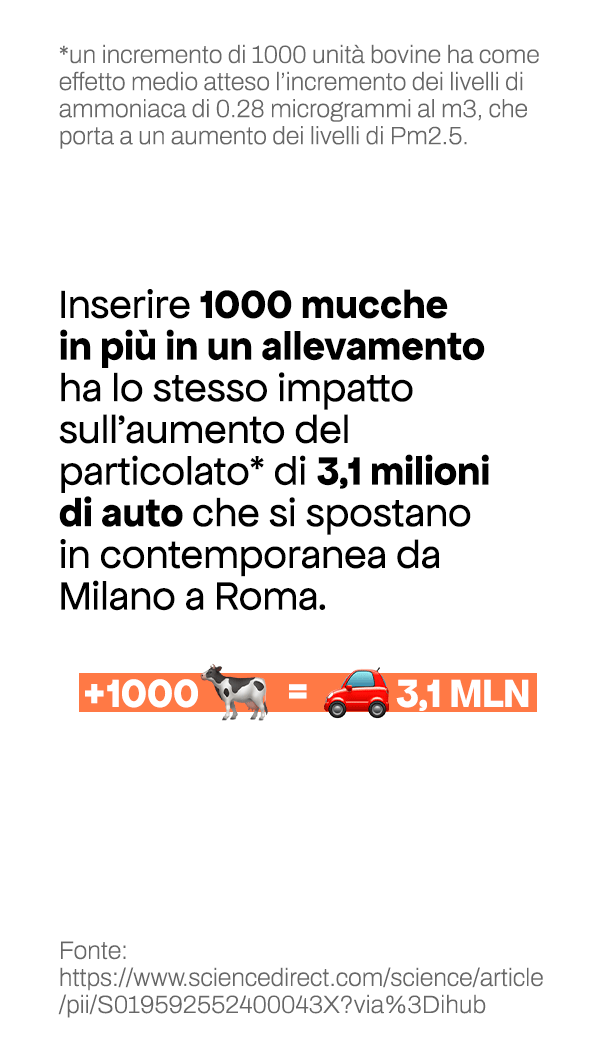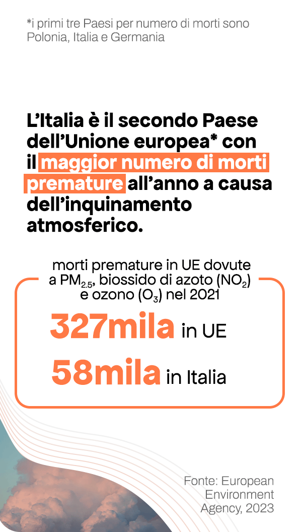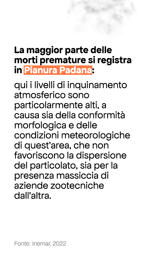 Un cartello ammonisce: «Fino a pochi anni fa, 1 morte su 9 nel mondo era causata dall’inquinamento atmosferico. La Pianura Padana era tra le peggiori in Europa per PM.»