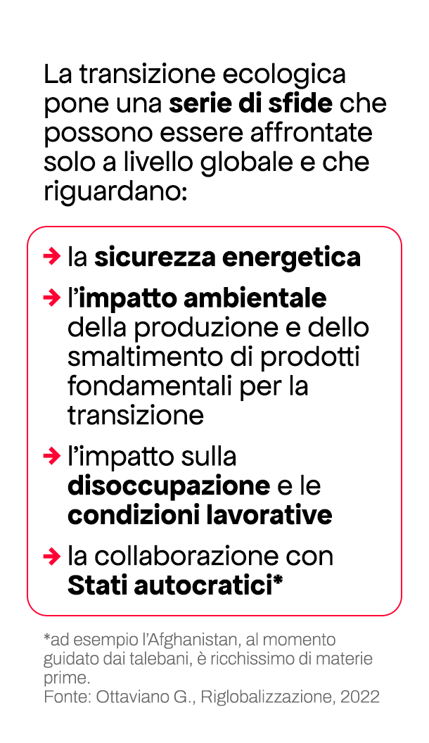 Ogni Paese ha agito da solo, con target e regole propri. In alcune aree le emissioni sono calate, altrove sono esplose. Le filiere si sono rotte, le disuguaglianze sono cresciute.Le tecnologie verdi avanzate sono diventate beni strategici. Chi controlla i materiali controlla l’innovazione. I Paesi più piccoli scelgono tra energia e salute.